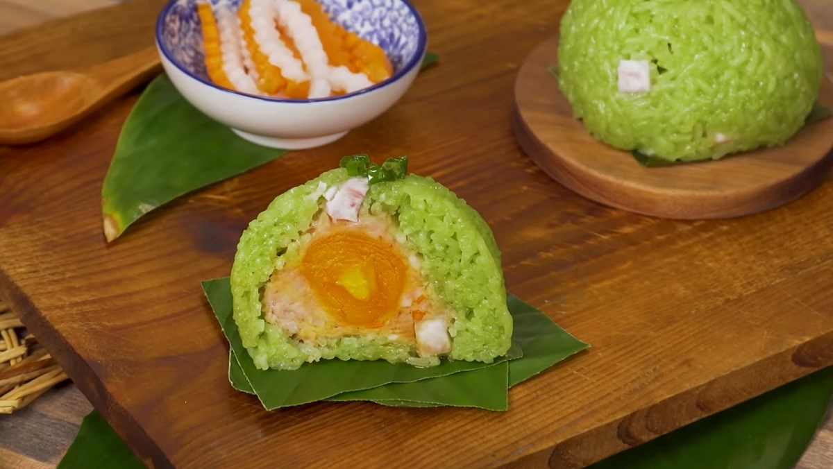 - Sau khi đãi nếp để ráo rồi thì lăn thịt và trứng cút qua nếp cho thật đều đem hấp chín. Sau khi hấp chín thì bóp thêm chút nếp vô thêm nếu nếp bao không đủ viên xôi.